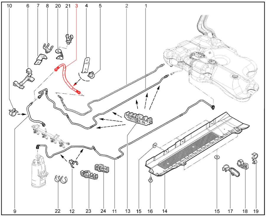 Штатный шланг топливный в сборе двигателя ВАЗ 21179 (1.8л) для Лада Иксрей.