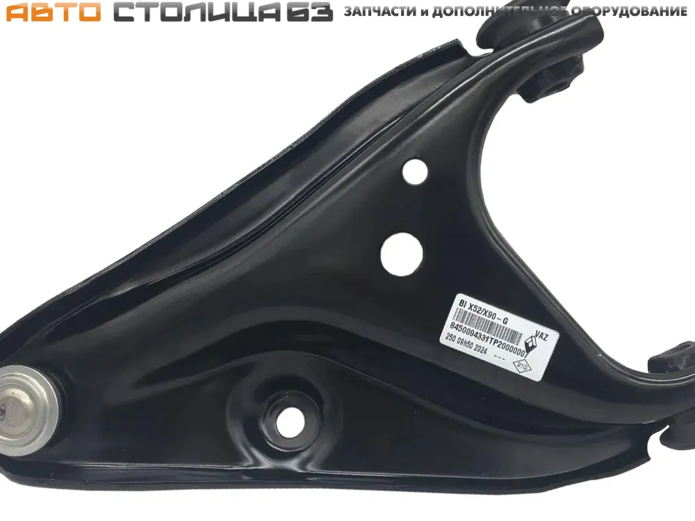 Оригинальный заводской правый рычаг передней подвески. Поставляется в сборе с сайлентблоками и шаровой опорой. Шаровая опора имеет боковую проточку.