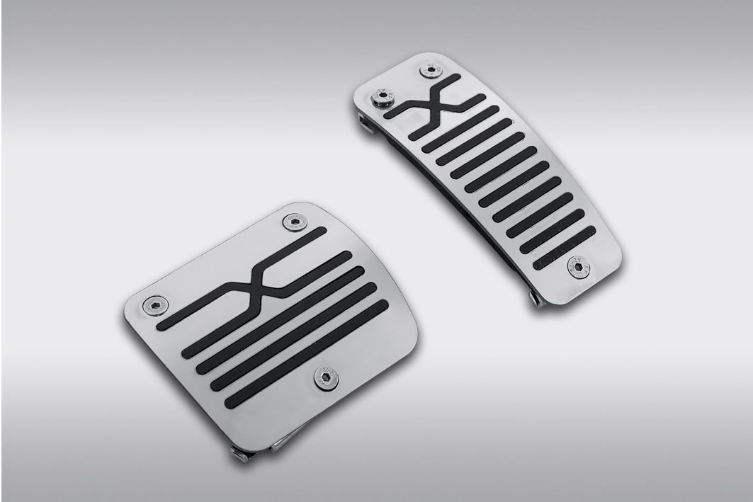 Накладки на педали из нержавеющей полированной стали с противоскользящими вставками обеспечивают повышенный контакт с ногой водителя. Придают интерьеру стильный, спортивный внешний вид.