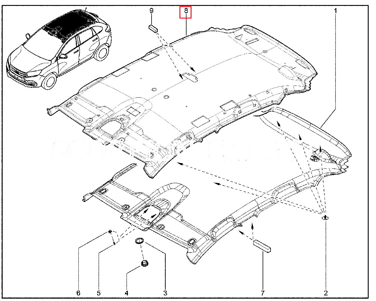 Обшивка потолка Лада Иксрей черного цвета. Штатно устанавливается на Lada Иксрей [BLACK].