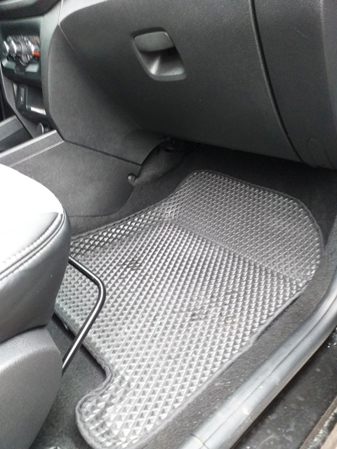 На коврике водителя нет разреза в районе педали сцепления, таким образом ковролин полностью закрыт от грязи и воды.