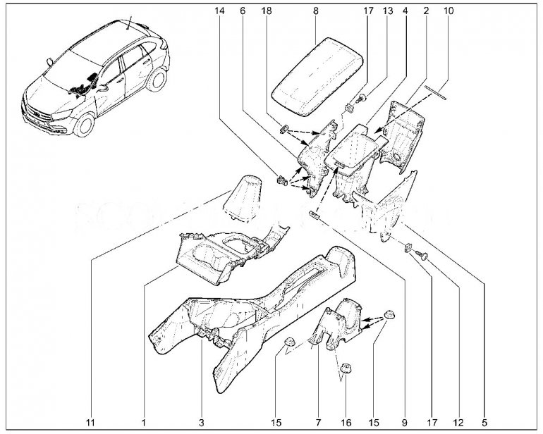 Одна из отличительных особенностей Лада Иксрей Cross - наличие центрального подлокотника с боксом. Этого аксессуара не хватает владельцам обычной версии кроссовера. Однако этот оригинальный подлокотник можно купить отдельно и установить своими руками.