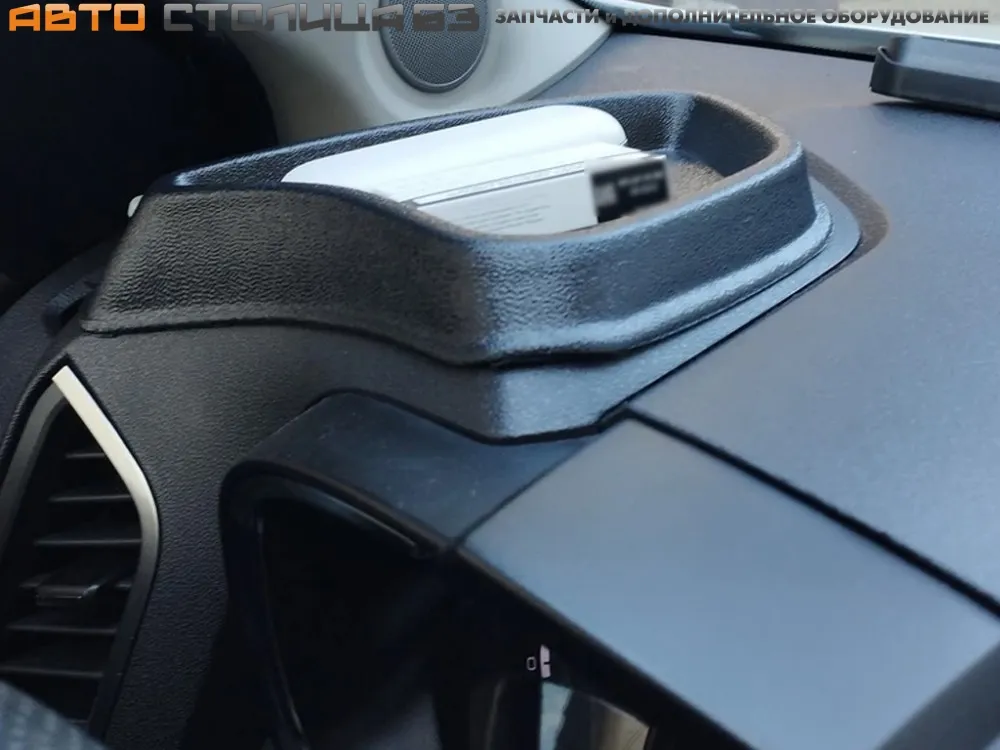 Органайзер панели приборов малый Лада Иксрей изготовлен из АБС-пластика, устанавливается на панель приборов при помощи двустороннего скотча, служит для организации пространства в салоне автомобиля и хранения мелочей.