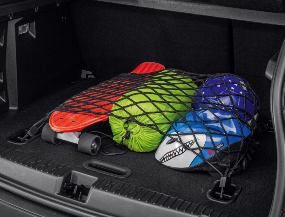 Грузоудерживающая сетка прочно фиксирует предметы малого и среднего размера от перемещений. Крепится за штатные петли в багажном отделении.
