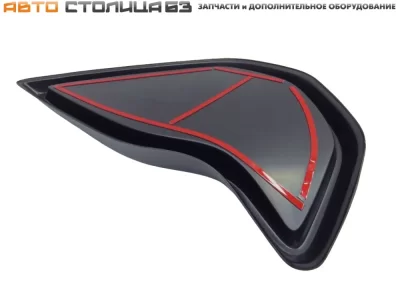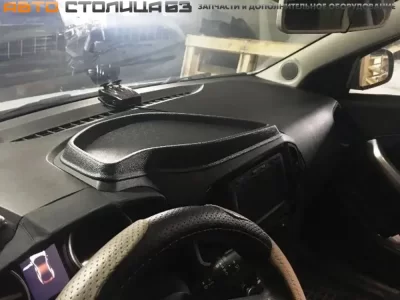 Органайзер панели приборов большой Лада Иксрей изготовлен из АБС-пластика, устанавливается на панель приборов при помощи двустороннего скотча, служит для организации пространства в салоне автомобиля и хранения мелочей.