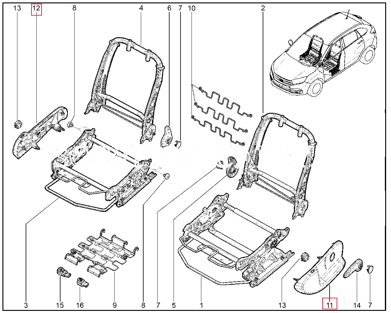 Облицовка переднего сиденья без обогрева наружная для Лада Иксрей и Ларгус (с высотной регулировкой).
