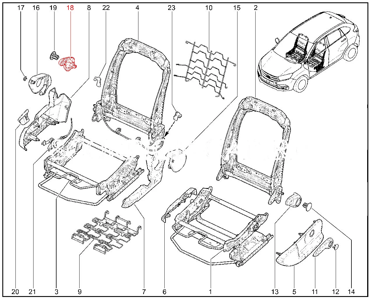 Штатная ручка регулировки наклона спинки переднего правого сиденья для Лада Иксрей Кросс.
