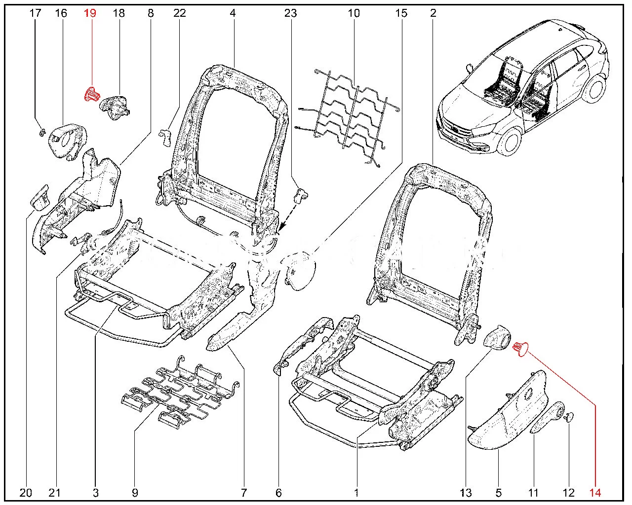Штатная крышка ручки регулировки наклона спинки сиденья для Лада Иксрей Кросс.