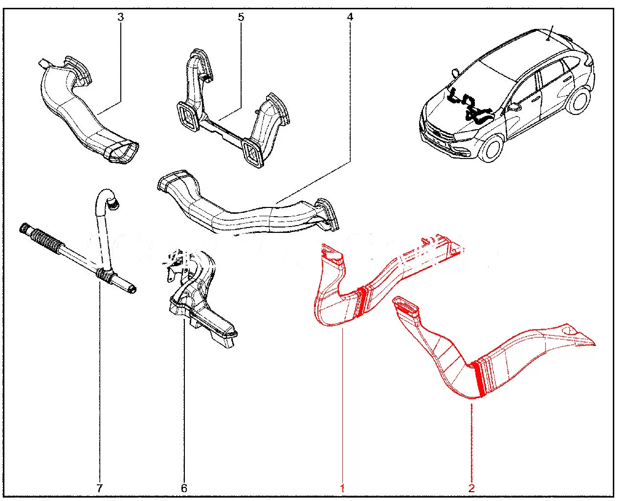 Штатный воздуховод обогрева салона задний для Лада Иксрей.