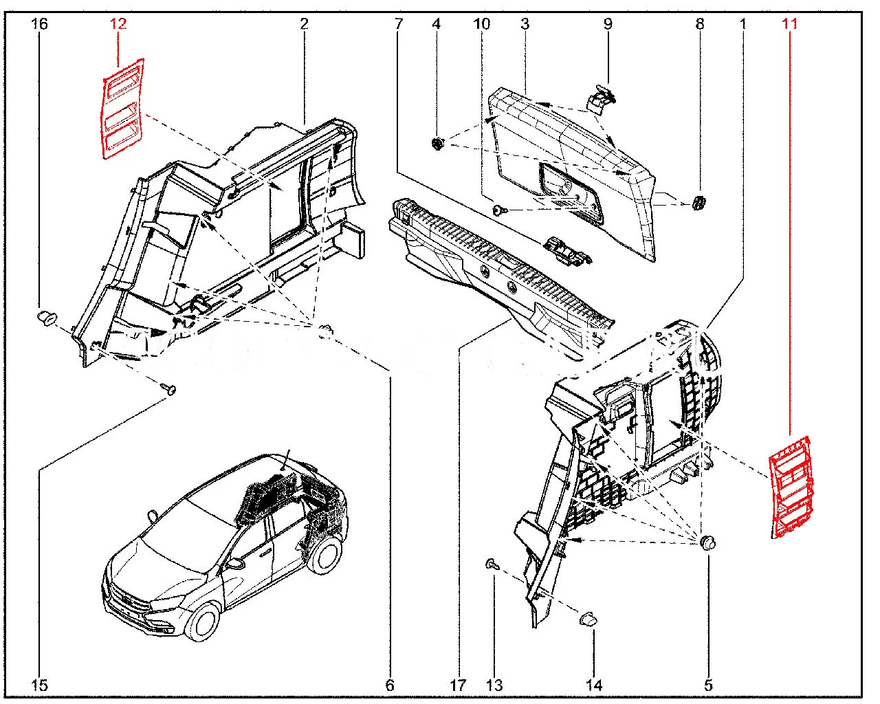 Штатная крышка лючка обивки багажника для Лада Иксрей.