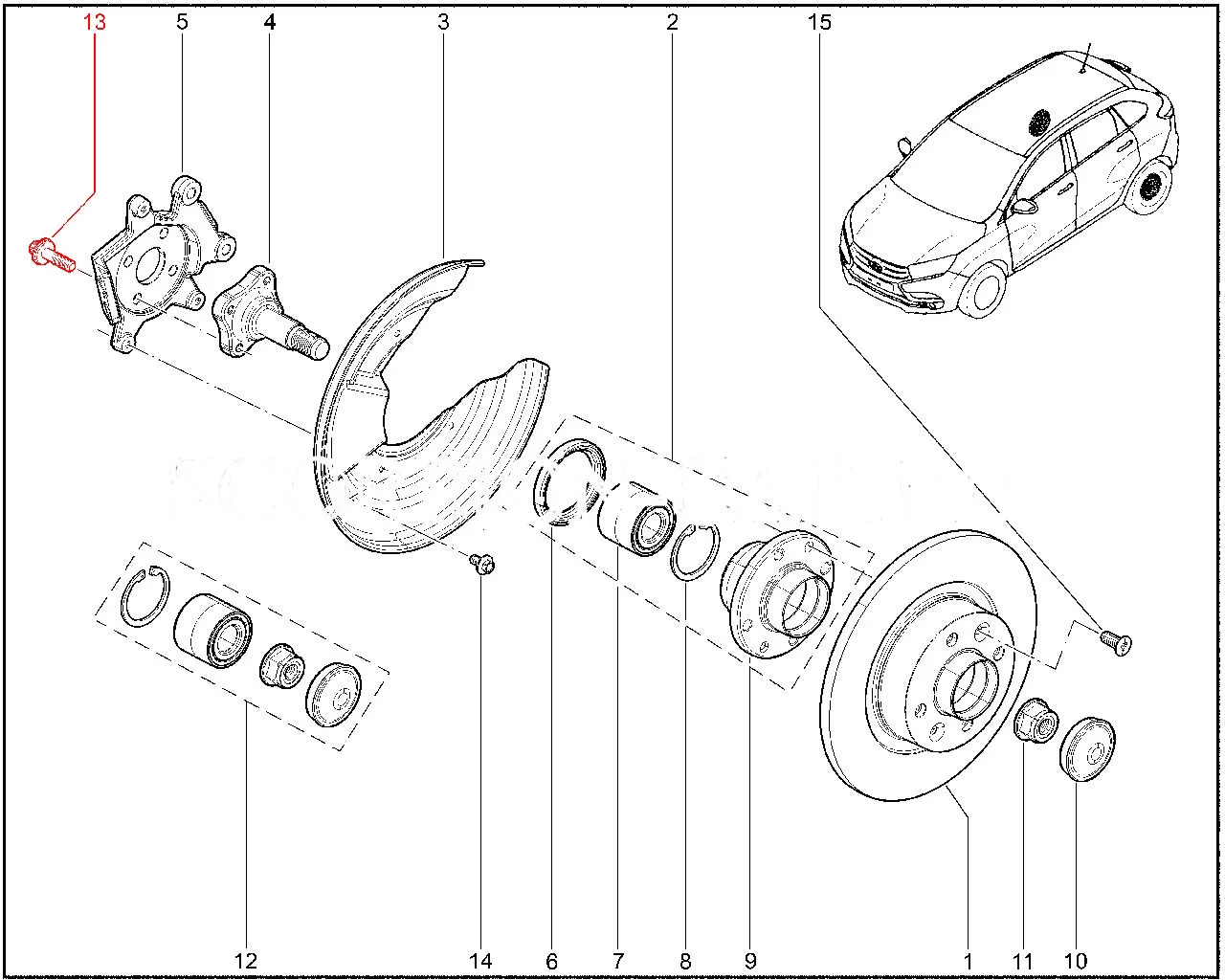 Штатный болт М10х1,25х45 с шайбой в сборе для Лада Иксрей Кросс.