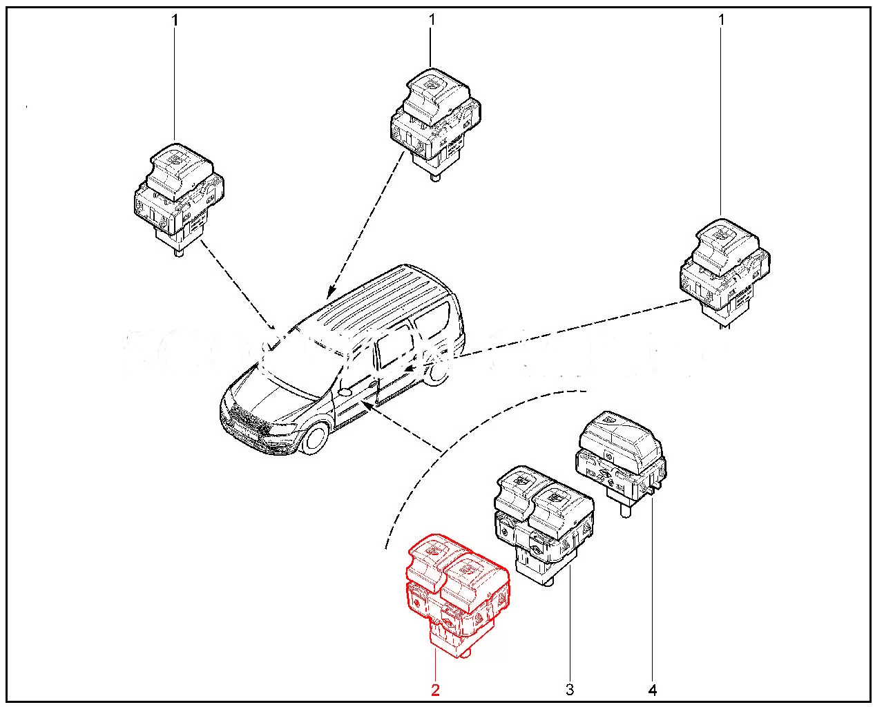 Штатный оригинальный переключатель электростеклоподъемника 254118044R для Lada Largus, XRAY.