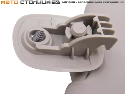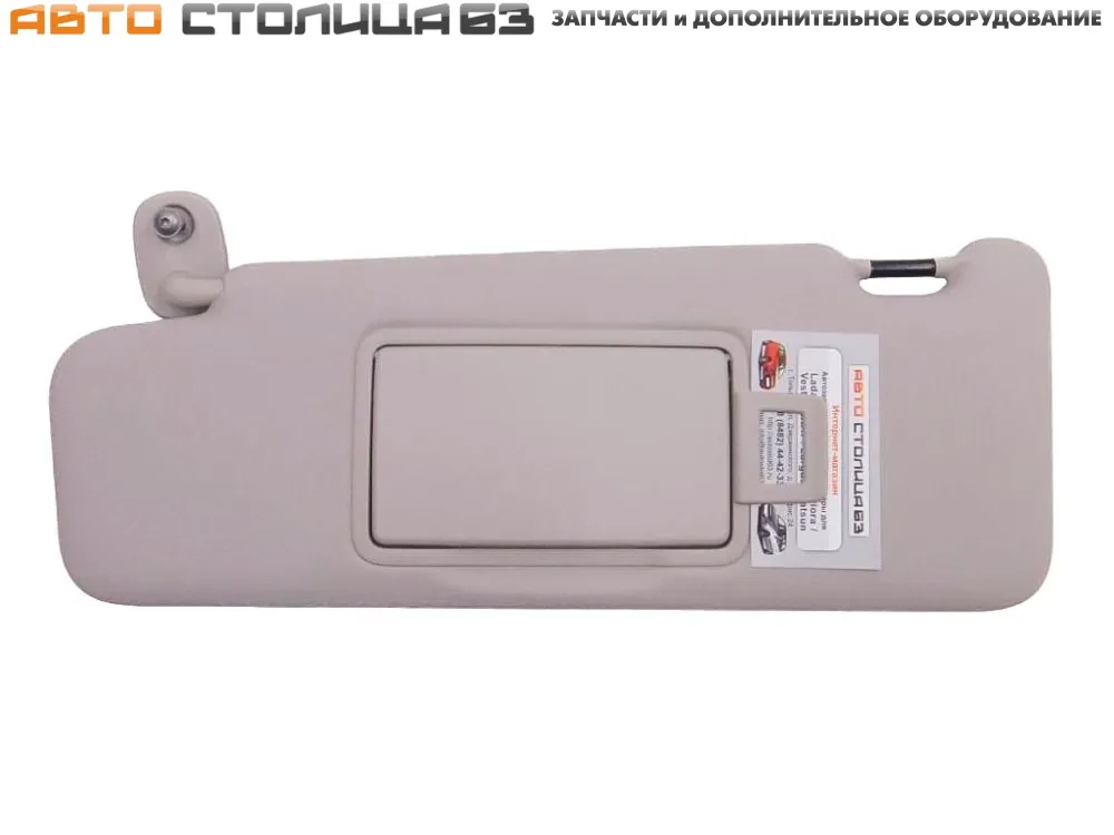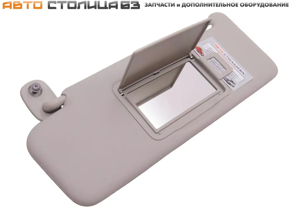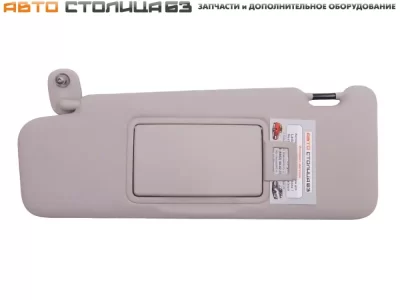 Козырек противосолнечный, цвет материала бежевый, на козырьке присутствует зеркало с откидной крышкой и зажим для визиток и документов.