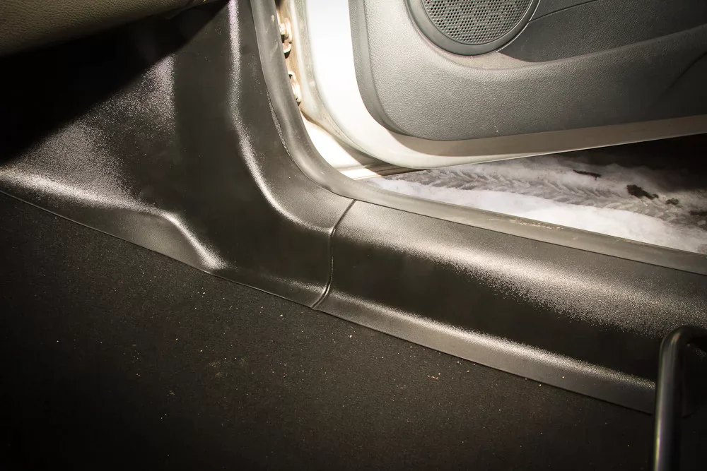 Накладки в точности повторяют форму салона автомобиля и обеспечивают прилегание с минимальными зазорами. Защитные накладки выполнены из материала аналогичного заводскому пластику и идеально вписываются в интерьер машины.