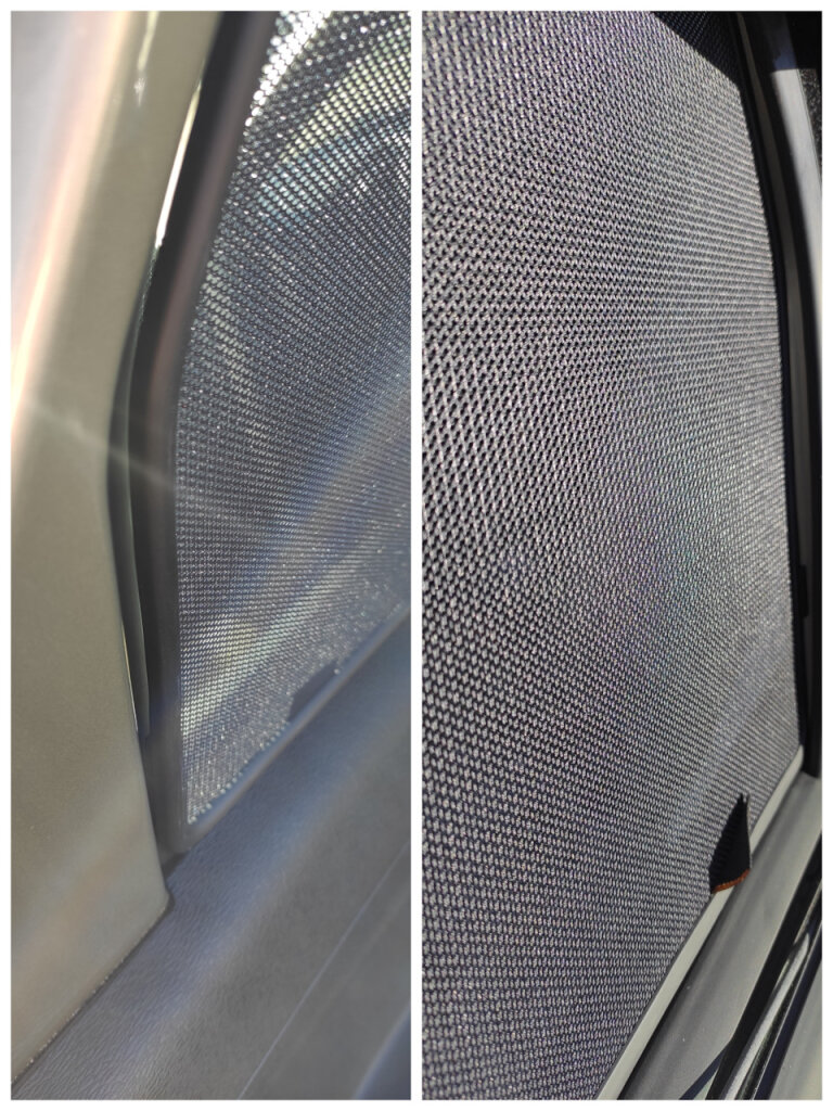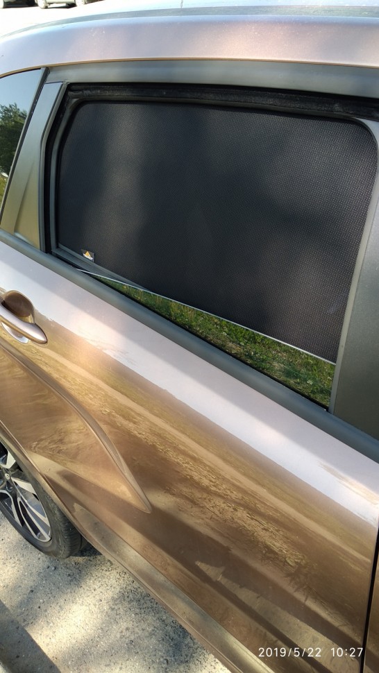 Изделие произведено с применением специальной плотной сетки, натянутой на жесткий резиновый каркас. Закрепляются на сильные магниты. Установленные автошторки не слетают даже на большой скорости и абсолютно не мешают открытию окна. Шторки обладают степенью прозрачности в 75-80%.