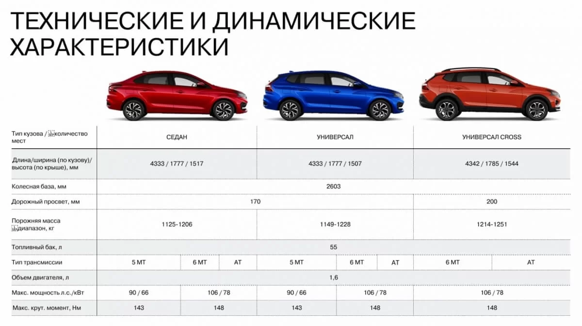 ВАЗ 1.6 л (90 л. с.), 5МТ ВАЗ | ВАЗ 1.6 л (106 л. с.), 6МТ Китай | ВАЗ 1.6 л (106 л. с.), CVT Китай | |