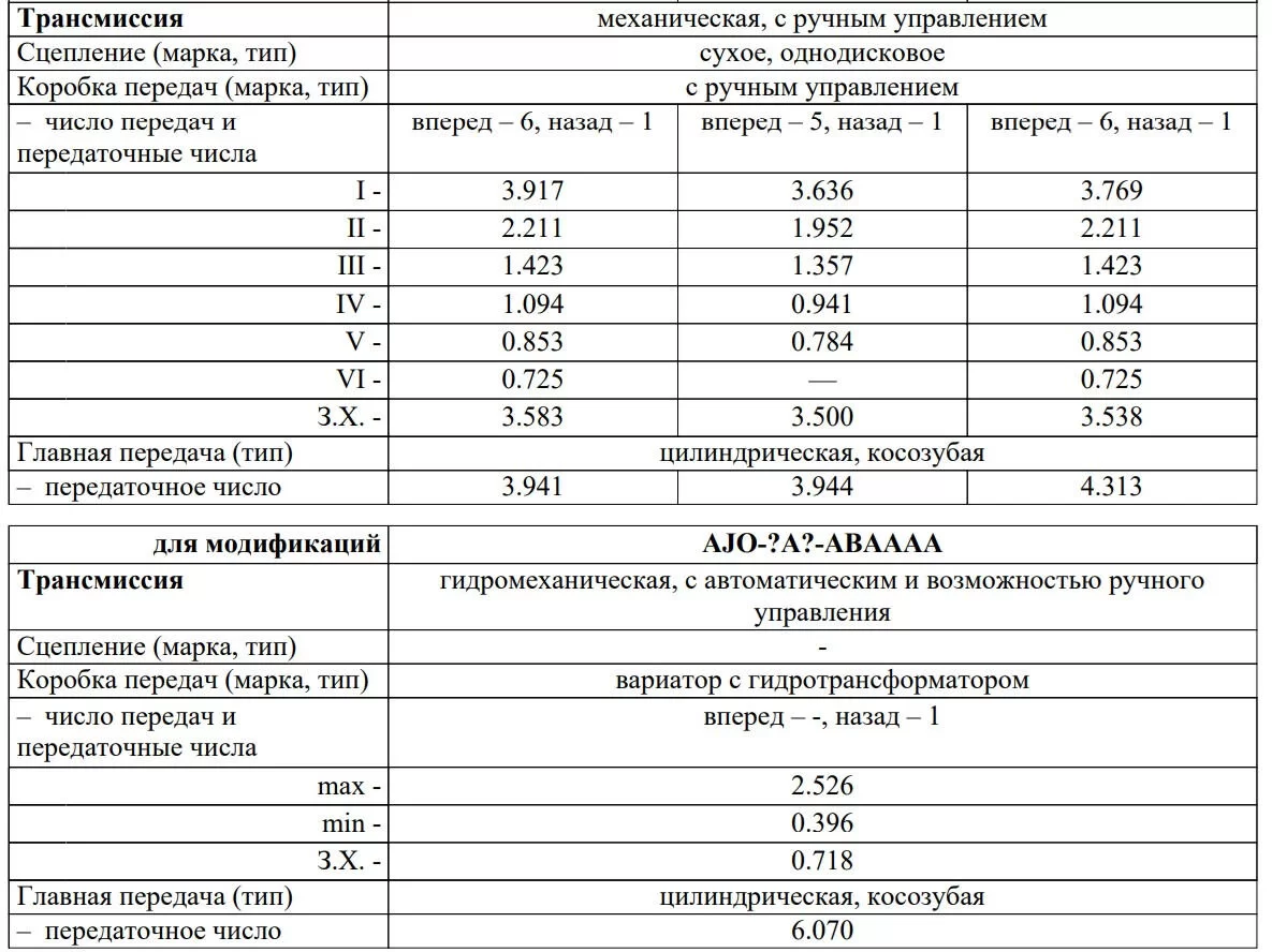 Тип трансмиссии | 5МТ | 6МТ | АТ |