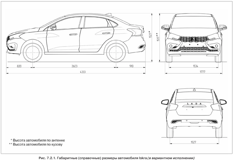 Длина / ширина / высота (по антенне), мм | 4333 / 1711 / 1517 | 4333 / 1711 / 1517 | 4333 / 1711 / 1517 |